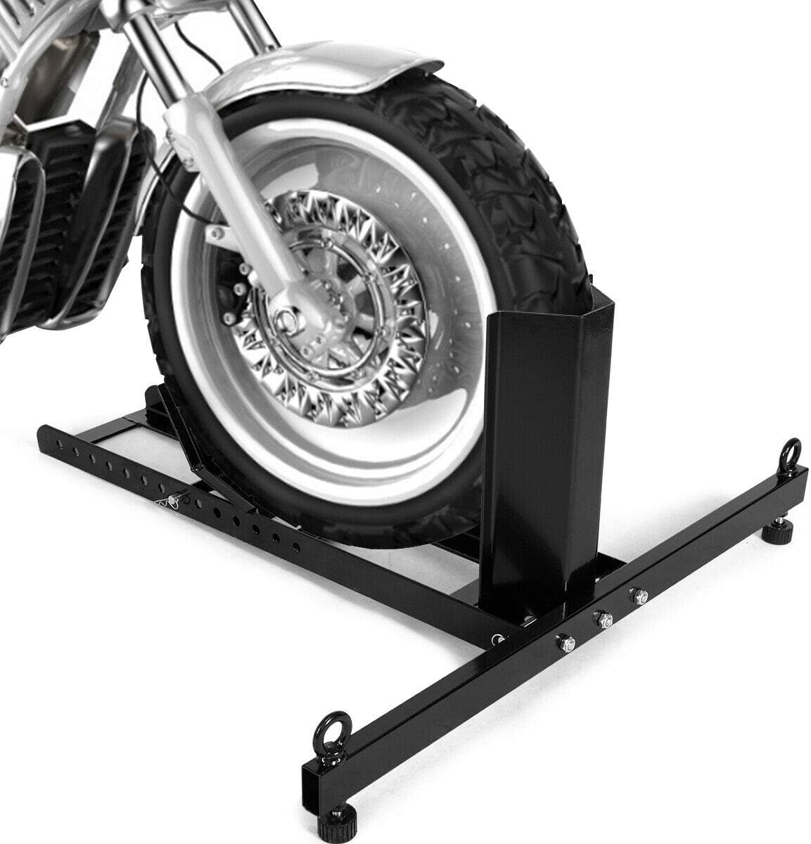 This makes it easy to carry from one location to another. Goplus Motorcycle Adjustable Wheel Chock. Multipurpose Suitable for Many OccasionsThis motorcycle wheel chock is necessary and perfect for anyone who owns a motorcycle.